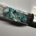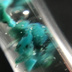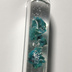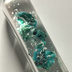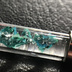 【レビュー用試作品シリーズの終了につきまして】 今回の作品から、試作品というタイトルが外れ、通常価格にて販売致します。 多くの方にご注文いただき、充分な数のサンプルを撒くことが出来たと判断したためです。 しかしながら、情報収集は今後も継続していきたいと考えております。 試験管の破損、レジンの黄変、内包物の変質等がみられた場合、下記の連絡先までご連絡いただけましたら、より良い試験管を作るための参考にさせていただきます。 例: ・箱に保管していたが、レジンが黄変し始めた ・ネックレスにしていたが、◯◯にぶつかって試験管が破損した ・ピアスにして1時間/日ペースで身に付けていたが、中の鉱物の色が褪せてきた etc… ★連絡先…boothメッセージ機能(ショップ:No-002まで) Twitter:@unravel04(透明なイズ) メール:reuvo71371@gmail.com 長さ25mmほどの中型試験管に、砕いたクリソコラの原石を入れ、無色透明なレジンで満たしました。 クリソコラは、不透明で鮮やかな水色〜緑色の色彩が特徴的な鉱物で、しばしば黒い鉱物を伴います。 試験管は(小)と同じ長さで、やや太めの中型サイズです。 詳しくは写真21枚目をご覧ください。 透明なプラスチック袋に入れた状態でお送りします。