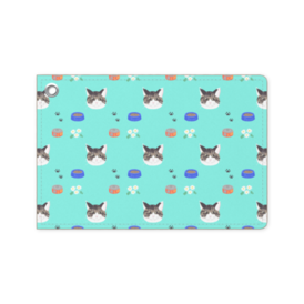 パスケース - 70 x 105 (mm)この商品はpixivFACTORYで作られた商品です。サンプル画像は完成イメージのため、実物と異なる場合があります。 我が家の猫、バロンの総柄パスケースです。可愛らしいアクアブルー。