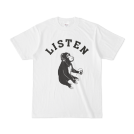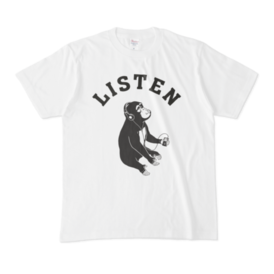 Listen ミュージックモンキー 猿 動物イラストアーチロゴTシャツ