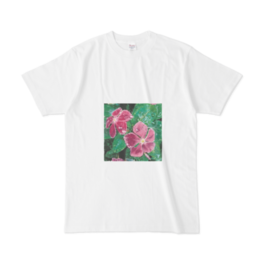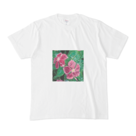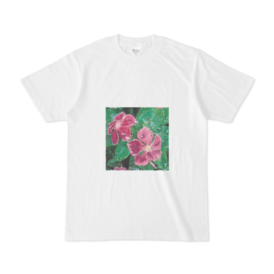 Tシャツ - XL - 白この商品はpixivFACTORYで作られた商品です。サンプル画像は完成イメージのため、実物と異なる場合があります。 雨に濡れるニチニチソウのtシャツです。 宜しくお願い致します。