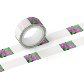 マスキングテープ - テープ幅 15mmこの商品はpixivFACTORYで作られた商品です。サンプル画像は完成イメージのため、実物と異なる場合があります。 雨に濡れるニチニチソウのマスキングテープです。 宜しくお願い致します。