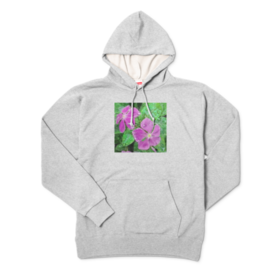 雨に濡れるニチニチソウのパーカー - 杢グレー