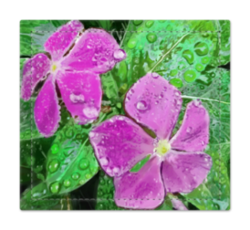 雨に濡れるニチニチソウの捺印マット