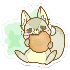きつねの姿でのびやかにクッキーをかじるアクリルキーホルダーですฅ^•ﻌ•^ 50×50㎜サイズ 背景の緑色は白版がないため透明感があります (ハシナ本体およびハートは白版があるため透けません) ※背景部分はかなり色が薄く、色や模様が解りづらい場合がありますです 模様を楽しみたい場合は不透明シリーズをお勧め致します この商品はpixivFACTORYで作られた商品です。サンプル画像は完成イメージのため、実物と異なる場合があります。