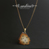 ***** 迷い込んだ森の中。 火事でもあったのだろうか。 古びた洋館がぽつりと立っていた。 恐る恐るドアを開けて、探検する。 うっすらとベールのように明かりが差し込んだ書斎を歩くと、 焦げて散りばめられた本のページが広がっていた。 まだ読める物語のカケラを集めて、アクセサリーを作ることにした。 ***** こちらは燃えた洋書のカケラの切り絵ネックレスです。 あったはずの物語が炎に炙られることで切り抜いたところから焦げてしまい、あっけなく消えて無くなります。 でもそこには確かに存在した軌跡がある。 そんな儚さを感じて頂けたら嬉しいです。 【大きさ】 ペンダントトップ H22mm×W20mm チェーンの長さは基本は40cmです。 男性や首周りがどうしても合わない方は、メッセージを下されば長いものと交換致します。 その際は、発送日数がプラスでかかってしまう可能性がありますのでご了承下さいませ。 【注意事項】 ・紙の薄さを活かすために、薄い仕上がりとなっております。 取り扱いは優しく接してあげて下さい。 ・掲載の画像は、撮影の都合やお使いのモニターにより実物と異なることがございます。