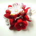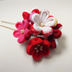 ちりめん生地を使用したつまみ細工の簪と下がりのセットです。 色々な可愛い梅の花をブーケ風に仕上げました。 下がりの下には小さなお花と鈴がついています。 下がりのUピンは小さなお子様でも使いやすいように小さめのものを使用しています。 七五三の髪飾りなどにいかがでしょうか? 〖サイズ〗 二本足簪 6.5cm 簪全体 11cm 梅の花 直径 2.5~3.5cm Uピン 6cm 下がりの長さ 12cm 1つ1つ丁寧に作っていますが素人のハンドメイド作品なので接着剤のハミ出しや歪み等がある場合があります。 ご理解頂けると幸いです。 ちりめん生地は水に弱く濡れると変形することもあります。 また長時間の押さえつけによっても変形することがあります。 使用時や保管にはご注意ください。 実際の色は写真やお使いのモニターによって多少異なって見えることがあります。 ご了承ください。 発送は郵便局からの定形外郵便での発送になります。 土日、祝日の発送はできません。