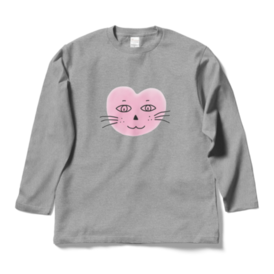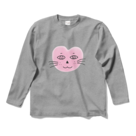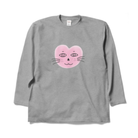 まるーいハートねこのロングスリーブTシャツ 杢グレー・灰色