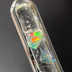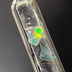 長さ33mm、太さ5mmほどの小型試験管に、砕いたオパールの原石を入れ、無色透明なレジンで満たしました。 オパールは、遊色が派手に現れるものを厳選して砕き、試験管に詰めております。 この試験管では緑や赤を中心に、青、水色、オレンジ、黄色など多彩な遊色が現れます。 色の出方が比較的細かく、試験管を回すとちらちらと遊色が踊ります。 オパール入り試験管につきましては、遊色が確認しやすい動画を掲載しております。 https://youtu.be/GdvE0UxehxI サイズにつきましては写真2枚目をご覧ください。 透明なプラスチック袋に入れた状態でお送りします。 【試験管の使用感調査につきまして】 レジンとガラス試験管、および鉱物という組み合わせでどのような経年変化が見られるのか、現在情報を収集しております。 試験管の破損、レジンの黄変、内包物の変質等がみられた場合、下記の連絡先までご連絡いただけましたら、より良い試験管を作るための参考にさせていただきます。 例: ・箱に保管していたが、レジンが黄変し始めた ・ネックレスにしていたが、◯◯にぶつかって試験管が破損した ・ピアスにして1時間/日ペースで身に付けていたが、中の鉱物の色が褪せてきた etc… ★連絡先…boothメッセージ機能(ショップ:No-002まで) Twitter: @No_002_ メール:reuvo71371@gmail.com ***ショップ用Twitterを開設しました*** @No_002_ 作品のご意見・ご感想、リクエストなどお気軽にどうぞ。 (リクエストはパーツ仕入れ先の在庫状況などにより、お応えできない場合がございます)