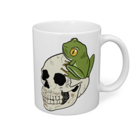 マグカップ - 直径 8 cm / 高さ 9.5 cmドクロに張り付くカエル君 デジタル仕様となります。 他のサイズ希望の場合、メッセージ頂けますと検討いたします。 アナログの白黒版も製作中です。