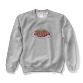 スウェット - XL - グレー牛タンを愛する人のためのスウェットです。現在取扱色は白、グレーのみです。 ※この商品はpixivFACTORYで作られた商品です。サンプル画像は完成イメージのため、実物と異なる場合があります。