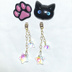 オッドアイの猫ちゃんと肉球がとっても可愛いピアスです♪ 肉球部分は少し柔らかい素材を使用しております! ハート型の16kコーティングチェーンそしてオーロラスターガラスがキラリと揺れて耳元をcuteに彩ります☆ チェーン部分はキャッチ側についておりますのでシーンに合わせてシンプルに猫ちゃん、肉球ピアスとしてもお使い頂けます♪ またキャッチをお手持ちのピアスに合わせればキラキラのオーロラスターが輝くオリジナルピアスに早変わり☆ スターはどんなピアスにも合わせやすいのでお勧めですよ♪ 送料込みのお値段になっております。 ※こちらはハンドメイド作品になりますのでご理解ある方のみ購入お願い致します。 ※使用中の破損やお客様都合の返品交換は出来ませんのであるご了承の程お求め下さいませ。