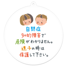 自閉症・知的障害のある方のためのアクリルキーホルダー。 「危険がわかりません」に変更して制作しました。 色味を一部変更し、70mmサイズを追加しました。 ※送料はこちら⇒ https://factory.pixiv.help/hc/ja/articles/115000182314 ------------- ※当ショップの商品は基本的に受注生産になります。 当方では印刷面のデザイン提供のみを行っており、 ご注文のお支払い完了後にPixivFactoryさんで商品の製造・発送が行われます。 商品のご注文 ⇒お支払い(お支払い後はご注文のキャンセル変更不可) ⇒pixivFACTORYさんの工場で製造開始 ⇒工場よりご購入者様へ直接発送 缶バッジとキーホルダーを一緒にご注文頂いた場合、それぞれ個別で発送されていて缶バッジのほうがひと足早くお届けされます。 商品によっては製造から発送までに最大で16営業日(土日祝除く)が掛かります。 受注生産の為ご注文から発送まで少しお時間を頂きますこと、ご了承ください。 ------------- ※キーホルダーのサイズ感などはこちらの商品ページをご参考ください。 https://kiopict.booth.pm/items/1781836 この商品はpixivFACTORYで作られた商品です。サンプル画像は完成イメージのため、実物と異なる場合があります。