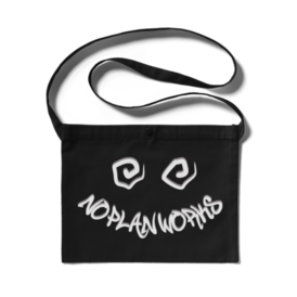 サコッシュ - 300 x 230 (mm)笑っているように見えるかい? 遠目にはニッコリ笑顔。よく見ればNO PLAN WORKSにクラクラ… そんなジャンキーにピッタリなデザインです。 パッと見は可愛いですが、カッコいいグラフティフォントを使用していますので男女問わず使えるのではないでしょうか 原宿あたりでウケそうと思うあたり製作者の年齢が見て取れます。 実用的なサイズなのでちょっとしたお出かけにも便利だと思います。 ※サンプル画像は完成イメージのため、実物と異なる場合があります。