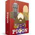 「世の中のすべては◯と△と□で出来ている。」 描き過ぎ厳禁。制限ありのお絵描きゲーム。 ピコンは◯(まる)と△(さんかく)と□(しかく)のカタチだけで正解を目指す とっても簡単なお絵かきジェスチャーゲームです。 ピコンの世界では今日も、『まんまるじん』『さんかくじん』『しかくじん』という三つの部族が「我こそが最も優れたカタチである」と神様への捧げ物を競い、いがみ合っています。 あなたは部族の力を借り、出てくるお題を柔軟な発想で考え、 ◯△□のカタチを使って 上手に神様に伝えましょう。 ただし、あまり描きすぎると相手に先に正解されてしまうかも・・・? ----- 約2年半ぶりの新作。 大人も子どもも一緒に遊べる、FOUNTAINのゲーム第二弾。 古文書のようなカードにはたくさんのカタカナで書かれた「ことば」が書かれています。神様(親)が見ずに選んだその「ことば」を◯△□のチカラを借りて神様に伝え、捧げましょう。 ただし、伝えたいばっかりに自分の番で具体的に描きすぎて失敗したら、次のプレイヤーを手助けしてしまいかねません。 <ゲームの概要> 神様(親)はたくさんの言葉が書かれたカードの束から1枚を見ずにめくり、その他のプレイヤーに見せながら1〜6の番号を宣言します。1〜6に書かれたカタカナの言葉を神様(親)の左隣のプレイヤーから◯△□いずれかのカタチだけを使って「2筆」だけ全員の見ている前で描きます。 描き終わったら、神様に向け、神様が1つ「言葉」を回答し、見事に言葉が伝われば得点! 不正解であれば、プレイヤー全員で手元のヒントチップを使い、「惜しい!近い!」または「全然違う・・・」を神様に提示します。 その後、その他のプレイヤーも同様に、先程の絵に描き足すように「2筆」描きます。1周しても不正解だった場合は2周目は「3筆」、3周目が「4筆」と描ける筆数が増えていきます。 正解して欲しいから分かりやすく描きたい・・・、でも描きすぎて不正解だったら他のプレイヤーに得点されてしまう・・・、シンプルながら何とも悩ましいお絵描きゲームです。 果たして、次に自分の番が回ってくるまで他のプレイヤーは不正解でいられるでしょうか・・・!? [PIQONはチーム戦も熱い!さらに2人だけでチャレンジも!] ピコンには3枚のボードを使用することで、最大7名で遊ぶことができます。 2人1チームとなり、1人が先に描き、その次にもう一人へと・・・という感じで、ルールは先程と同様ですが、シングルルールとは違い、ボードは同じチーム内で回します。さらに、先に早く描けたチームは「PIQON!」と宣言することで、他のチームより先に神様に絵を見せることができます。 ピコンは2人だけで遊ぶこともできます。 2人で遊ぶ時は「協力戦」となります。お互い交互に神様を行い、連続で何問正解できるかチャレンジします。 [内容物] ・イラスト用ボード×3枚 ・言葉カード×36枚(210ワード)(オリジナル用白紙カード1枚含む) ・ヒントチップ×6枚 ・砂時計(30秒)×1個 ・水性マジックペン(消しゴム付)×3本 ・遊び方説明書
