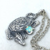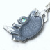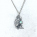 鬼形獣吉弔八千慧モチーフのネックレス 八千慧のキーワードは「髑髏」・「吉弔」・「黒幕」 前提として驪駒早鬼アクセと対極になるようなデザインにしてみました。 2つ並べると色味やモチーフの向きなどが対比になるような感じです。 また、今回の畜生界トップの御三家には共通のモチーフとして髑髏を取り込んであります。 隷属する人間霊のイメージですね。 全体のフォルムは元ネタである吉弔の姿をそのまま使い、縛られ魂が抜けているような髑髏が甲羅に浮かんでいます。 下から睨め上げるようないやらしい表情はうしとらの白面の者を意識しています。 本体:シルバー925 石:シンセティックオパールラウンドカボションカット ※人工石使用ですがオパールの性質上、石の色味や模様が画像と異なる場合があります チェーン類:メッキ品(50cm) 本体サイズ:h42mm×w20mm