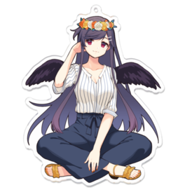 アクリルキーホルダー - 100 x 100 (mm)春風にふんわりと揺られていたら目の前に素敵な花冠がひとつ。 そうっと拾って頭にのせて、大好きな季節を満喫するの。 実際に持っている私服をモチーフに描いたアクリルキーホルダー。 春のみに限らず、是非この子に色んな景色を見せてあげてね!!