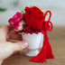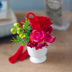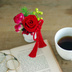 十二国記の陽子をイメージしたプリザーブドアレンジメントです。 かなり小ぶりなので場所を選ばず、さりげなく飾れます。 ギフトにも便利なクリアケースに入れてお届けします。 赤いバラをメインに、緑の眼をイメージしたベリー、男前な針葉と組紐でまとめました。 素材: ・プリザーブドフラワー ローズ、アジサイ ・アーティフィシャル(フェイク)フラワー ローズ、ベリー、葉 サイズ: クリアケースサイズφ10㎝×12㎝