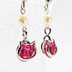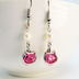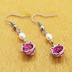 猫フレームのスワロフスキー(ローズ)と淡水パールを組合せた大人可愛いフックピアス サージカル可