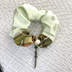 着物生地から作ったシュシュです 刀のチャーム付き。 正絹のとてもよい手触りを楽しんでいただきたいです。 髪が短い方は手首などにいかがでしょうか? シュシュ 直径約11cm チャーム 約3.5cm