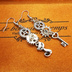 アンティークシルバー 猫と歯車・カギを組み合わせたスチームパンク風アシンメトリーピアス サージカル可