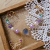 ご覧いただきありがとうございます。 鬼滅の刃 蟲柱 胡蝶しのぶ イメージのマスク留め(ブレスレット)です。 マスクをして耳が痛くなる方へオススメです。 使用例が4枚目にございます。 ゴムへ装着し、フィットしつつ耳への負担を和らげます。 画像2枚目にもありますように、アジャスターも付属致しますので、ブレスレットとしても使用していただけます。 アクリルパーツ、プラパール、スワロフスキー使用。蝶のチャームも繋げました。 必要以上に引っ張ると破損の恐れがございますので、ご注意下さい。 ◇全長:約17㎝(アジャスター使用時+6㎝) ◆別ページにて、禰豆子イメージのマスク留めもございます(画像3枚目参照)◆ 丁寧を心がけておりますが、素人によるハンドメイド品です。 裏処理等、甘い部分もございます。 以上、ご理解いただける方のみ、よろしくお願いいたします。