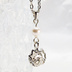 ひげ付き猫フェイスモチーフにクリアカラー(透明)の大粒スワロフスキーをはめ込んだ可愛いチャームにスワロフスキーのパールを組み合わせたネックレスです さり気なく猫好きをアピールできる大人可愛いネックレスに仕上げました 猫フレームにはめ込んであるスワロフスキーは直径8mmの大粒を採用しています スワロフスキー製のパールはキレイな球体で、傷がつきにくくなっています ※オプションにて約5cmのアジャスターを追加可能です ※モチーフならびにチェーンは真鍮の銀メッキですので、金属アレルギーの方はご注意下さい 「スワロフスキー・クリスタル」 スワロフスキーは100年以上もの歴史のあるオーストリアのクリスタルガラス製造会社が生み出すクリスタルガラスです。その独自の製造法とカッティング技術により生み出されるクリスタルガラスは透明度と光の屈折率が高くてとても美しい輝きを放つとされています。当方では一般販売されている素材を利用させていただいています 「スワロフスキーパール」 クリスタルガラスに本物と同じ輝きのパール加工と、その上にマットカラーのようにも見えるエフェクトを施しています。従来の人工パールにはない真円形で傷のない仕上がりが特徴です ※素材のモチーフは亜鉛合金に銀古美色、チェーンは鉄製の銀メッキ、金具などはスチール製です 金属アレルギーの方はご注意ください ※チェーンの長さは標準で約40cmですが、長さを45cmもしくは50cmに変更が可能です ※アジャスター(約5cm)を追加できます ※このネックレスはチェーンをSV925(シルバー925)に変更が可能です チェーンの長さは40cmもしくは45cmと限定させていただきます(アジャスター追加可能) SV925の場合チェーンの幅は若干細くなること予めご了承くださいませ ※チェーンをSV925に変更してアジャスター追加希望の際は オプションの「チェーン変更」の「SV925+アジャスター」をお選びください 「材質」 猫モチーフ:真鍮・銀メッキ スワロフスキー・クリスタル スワロフスキーパール チェーン:真鍮:銀メッキ 「大きさ」 猫フレームサイズ:約12mm×9mm スワロフスキー:約8mm チェーンの長さ:約40cm 「重量」 約3.87グラム(アジャスターなしの場合) ※ご使用のモニターの色の違いにより、実際の商品と色味が若干異なる場合がございます。予めご了承ください NN-NK39