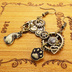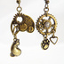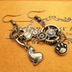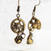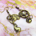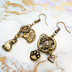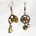 スチームパンク風アンティークカラーの猫と肉球と歯車のアシンメトリーピアス・イヤリング