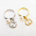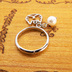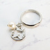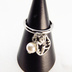 シルバーカラー 猫フェイス(ハチワレ)フレームとスワロフスキー・パールの大人可愛いリング フリーサイズ