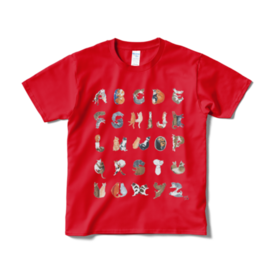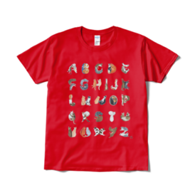 猫文字アルファベット 仲良くいっしょに Tシャツ 赤