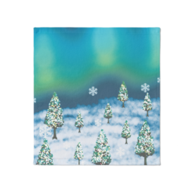 オーロラ輝く雪の夜空のイルミネーションツリー