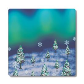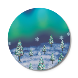 オーロラ輝く雪の夜空のイルミネーションツリー