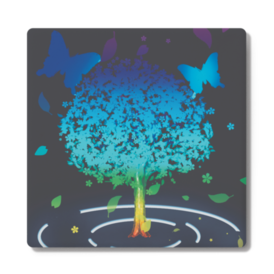 水面に立つ幻想的な木を飛ぶ蝶