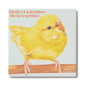 コースター - 角形小鳥やいろんな鳥類を愛する沼へ誘う、黄色い妖精。 『類は友を呼ぶ』birds of a feather flock togethe 小鳥のいる生活は楽しいです。今朝は牛乳をかけたミューズリーのボウルの真ん中にダイブされました。 さあ、鳥沼へ既にズブズブの方もそうでない方もご一緒にドボンしましょう!(ほかに円形版と2種類あります) この商品はpixivFACTORYで作られた商品です。サンプル画像は完成イメージのため、実物と異なる場合があります。