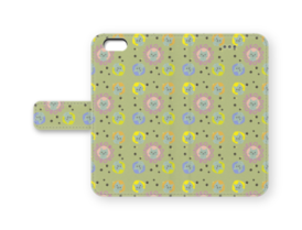 どろねこ手帳型iPhoneケース#1(パターン・グリーン)
