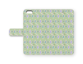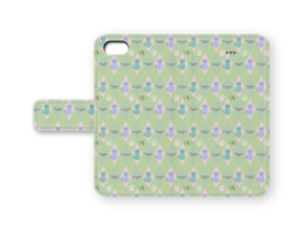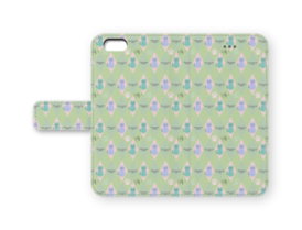 どろねこ手帳型iPhoneケース#5(ひし形パターン・グリーン)