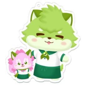 アクリルキーホルダー - 70 x 70 (mm)ショップの店員さんになったフミヒロとチェリスをイメージして描いたイラストのアクリルキーホルダーです。 一生懸命、楽しそうに接客をしてくれている2匹の様子を描きました。 「いらっしゃいませ~!店内の商品ゆっくりご覧くださ~い!」 そう声をかけているような気がします。 購入特典として、アクリルキーホルダーにデザインされたイラストと同一のものを使用したスマホ用壁紙をお付け致します。『購入した商品』のページ等からダウンロード可能です。 ※商用利用·二次配布は禁止です。個人で楽しむ範囲(壁紙やアイコンにする、写真へスタンプとして貼り付ける等)での使用は自由です。 この商品はpixivFACTORYで作られた商品です。サンプル画像は完成イメージのため、実物と異なる場合があります。 この商品は縦横最大70㎜です。pixivFACTORY内で70㎜×70㎜の印刷可能枠ギリギリまでイラストを配置していますが、デザインの縦横比の関係上、商品が記載のサイズに満たない場合があります。 価格:原価1070円+デザイン費
