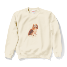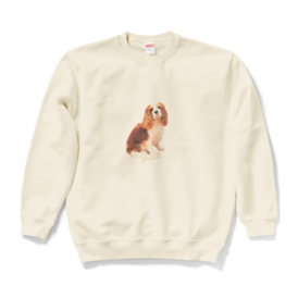 スウェット - XL - ナチュラルこの商品はpixivFACTORYで作られた商品です。サンプル画像は完成イメージのため、実物と異なる場合があります。 キャバリア犬、こむぎさんを中央にあしらったシンプルなデザインです。 こむぎさんをその日の主役にしたり、外しアイテムにしたりして、コーディネートをお楽しみください。