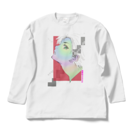 ロングスリーブTシャツ - XL - ホワイトレインボー。ピアス。横顔。 自由に想像したり意味を付けて楽しんでいただければ。 この商品はpixivFACTORYで作られた商品です。サンプル画像は完成イメージのため、実物と異なる場合があります。