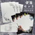 手紙と封筒がセットになっています。 お手紙の方はB5サイズで二種類×3枚ずつ入っています。 1.鯱(シャチ)が泳いでいる柄、モノクロ 2.蝶やくらげ(花になっているくらげ)が泳いでいる柄、カラー 封筒は長4封筒で2枚入っています。 くらげのところに名前や住所を書き込めるようになっており、裏側には色鮮やかな蝶トンボがいます。閉じるとピッタリと重なるようになっています! 自由にアレンジしてあなたの想いを形にしてみてはいかがでしょうか。※ニ次利用転売はNG セット内容(画像4枚目参照) ・鯱(シャチ)モノクロ手紙×3枚 ・蝶やくらげ(花くらげ)カラー手紙×3枚 ・長4封筒×2枚 (kureaの名刺/メッセージ付き) ※BOOTH倉庫より発送商品