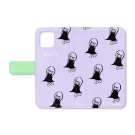 手帳型iPhoneケース - iPhone11 - ストラップ穴 なし(パープル)オリジナルキャラクターのパニーです。 カラーは(ピンク•グリーン•パープル•ブルー•ホワイト)選べる5色! この商品はpixivFACTORYで作られた商品です。サンプル画像は完成イメージのため、実物と異なる場合があります。