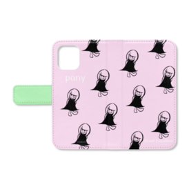 手帳型iPhoneケース - iPhone12 mini - ストラップ穴 なし(ホワイト)オリジナルキャラクターのパニーです。 カラーは(ピンク•グリーン•パープル•ブルー•ホワイト)選べる5色! この商品はpixivFACTORYで作られた商品です。サンプル画像は完成イメージのため、実物と異なる場合があります。