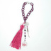 使用素材:ガーネット・スワロフスキー タッセル素材:刺繍糸 基本金属:ロジウム(シルバー・銀) 長さ:飾り部分11㎝、チェーン部分15cm 着物の裾をイメージして、タッセルの裾を二段にしています。 髪飾りのイメージで水引パーツを、名前にある「紅葉」から紅葉模様のアクリルパーツを使用しています。 キャラクターの武器から刀パーツを用いました。刀身には桜の模様が入っています。 タッセルは柔らかい糸で作っているため、お好みで細くまとめていただくこともできますし、指でそっとつぶしてのばしていただければ大きく広がったように見た目を変えることができます。 バッグに取り付ける部分には、金属ではない糸製のチェーンを使っているため、バッグ等を傷つけにくいです。また、金属のチェーンのような高い音が立つことはありません(ただし、飾り部分がこすれる音は出ます)。 バッグ等に付ける際、チェーンのどの部分にも留め具パーツを噛ませることができるため、お好みの長さに調整できます。 ※タッセルはハンドメイドのため、ひとつひとつ大きさ・長さが異なることをご了承ください。また強い力に弱いため、丁寧なお取り扱いをお願いいたします。くせの付きにくい素材となっておりますので、乱れた際には軽く指で整えていただくだけで房が落ち着きます。 ※素材名を記した画像内、青○で囲んだパーツがスワロフスキーとなります ※バッグは商品に含まれません ※送料には梱包代が含まれています。クリックポスト・宅急便コンパクトのいずれかで発送いたします。 ※天然石(シェル・淡水パールなどを含む)ビーズは天然物のため、色味や大きさや形状が粒によって異なります。また、通し穴周辺を中心に割れ・欠け・ひび・傷あるものもございます。こちら、ジュエリーとは異なりますのでご了承お願いいたします。 ※天然石・素材の名称・色・形状は素材購入時の商品の記載によっています。