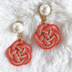 ****************************** 「水引(Mizuhiki)」は、和紙のこよりと絹糸などで作られた日本独自の素材です。 人と人を結ぶと言う意味などがあるそうです。 "Misuhiki" It is original Japanese material made of Japanese paper and silk thread. It is used for gift wrapping in Japan. ****************************** 和歌の枕詞のように 赤色がさして照り輝くような色合いの水引で作ったモチーフに コットンパールを合わせた、美しいピアスです。 水引もコットンパールも、とても軽い素材ですので、 思わず着けていることを忘れそうなくらい快適です。 浴衣や着物にはもちろん、アジアンなワンピースや、 フェミニンなドレスなどに合わせていただいても素敵♪ 旅行のお供にしてお食事の時のドレスアップ時に使ったり、 もちろん普段使いにしても、目立ちすぎないのでおススメです。 また和風の素材なので、外国の方へのプレゼントにも喜ばれると思います。 同じデザインのイヤリングもございます。 https://black-mow.booth.pm/items/2837010 またお色違いもございますので、是非ギャラリーをご覧ください。 他のサイトでも同時に販売しておりますので売り切れの場合がございます。 ご了承くださいませ。 ★サイズ 長さ:3.5cm 花の大きさ:2cmくらい コットンパールの直径:0.8cmくらい 【注意事項】 水引は紙素材ですので、多少の水分では問題ありませんが洗濯などはできません。 汗や直射日光に照らされたり、摩擦や経年劣化により色褪せや毛羽立ちすることがあります。 無理な力を加えたりしますと、モチーフが取れたり変形したりすることがあります。 繊細な素材なので、お取り扱いにはご注意ください。 金属アレルギーをお持ちの方は、ご使用をご遠慮ください。 お手持ちの端末により、写真の色味が若干違う場合があります。 お届けにつきましては、丁寧な梱包を心がけていますが、 配送時の破損、紛失に関しては補償出来かねますので予めご了承ください。 土日祝日が入りますと、発送が遅れることがあります。 送料削減のため、簡易包装を心がけておりますのでご了承のうえ、ご購入をお願いします。