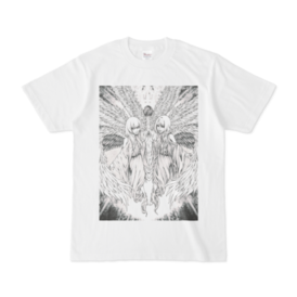 Tシャツ - XL - 白コラボユニット「ミーウェル&Trouveres」のTシャツ -セラフィムの巫女仕様- です。 Trouveres https://trtrouveres.wixsite.com/trouveres ミーウェル https://miwele.com/ イラスト:荻原敦 https://twitter.com/ogiatsu_metal この商品はpixivFACTORYで作られた商品です。サンプル画像は完成イメージのため、実物と異なる場合があります。