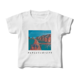 キッズTシャツ - 100cm - 正面この商品はpixivFACTORYで作られた商品です。サンプル画像は完成イメージのため、実物と異なる場合があります。 商品名 キッズTシャツ 100㎝ タヒチとレインボージブラ 夢を叶えるレインボージブラ 星きらら熊本アーティスト