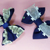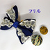 刀剣男士イメージ・グッズ。世界にひとつだけの限定品です。 ※スマホをご利用の方は、画像をタップしていただくと全体が見える画像に切り替わります。 「にっかり青江単騎出陣」期待が高まって、久々にモノづくりモードに突入しました。 第三弾は、ネイビーのグログランリボンで作ったWリボンをベースに、フリルや、ハートのオーガンジーのリボンをプラスした、ポニーフック。 セットの、くるみボタンもヤナギ柄の布で作りました。 ボタンは軽量なので、もち江さんにつけることもできます。 おまけに「シークレット」のストラップもつけちゃいます。 この商品は「おひとりさま一個限り」ですが、「ワクワク08:30」の他の商品と同時購入されますと、一個分の送料で4つまでの商品が同送できます。 にっかり青江モチーフ 第一弾「もち江さん専用ざぶとん&缶バッチ」 第二弾「リボンのポニーフック&くるみボタン」も見て下さいね。