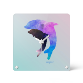 優しい色合いのイルカの親子時計 サイズ 150x150mm この商品はpixivFACTORYで作られた商品です。サンプル画像は完成イメージのため、実物と異なる場合があります。