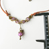 ガラスのクラックビーズを柔らかく光を反射するワイヤーで囲みました。クラックビーズは中身にヒビの入ったビーズで、光が当たると中のヒビが光を反射して発光するように輝きます。 万華鏡のように、動くたび光の当たり方が変わるとキラキラ輝くため、自分で眺めるのも楽しいペンダントです。 鎖骨あたりに飾りがくるのでデコルテが綺麗に見えます♡ 装飾が多いので柄の少ないトップスに合わせるとよく似合います。クラック部分が光を反射しやすいため、昼のお買い物から夜の飲み会等時間を問わずお楽しみいただけます。 豪華なスタイルがお好きな方は柄物のトップスやスパンコールなどの着いたトップスと合わせたり、社交ダンスなどのアクセサリーにもおすすめです。 似せて作っても均一に同じようにはできないため、全く同じ形はひとつもない一点ものです。おそろいなどご希望の方は全く同じにはできかねる為ご注意ください。 サイズ 赤 約1×7cm 紫 約6×8cm 桃 約7×6cm ペンダントの長さは40〜50cmで調整可能 長くしたい、初めから切っておいて欲しいなどご要望あればお気軽にご相談ください。調整は追加料金ありません。 ワイヤー 銅(変色防止剤:エナメルカラー) ガラスビーズ スウェード 合皮 *************************************** ご覧いただきありがとうございます。 トラブル防止のため、以下の注意点を必ずお読みください。 ・お届けした商品に破損や不備、商品の不足があった場合、商品到着後3日以内にご連絡ください。事実確認の上で、至急対応をさせていただきます。 ・こちらの不備以外での返品や返金の対応はお断りしております。 ・ハンドメイド作品ですので、お値引き交渉などは承っておりません。 ・お使いの端末や閲覧環境により、写真と実物の色味や質感が多少異なって見えることがございます。色味やパーツなどご質問いただければ写真を撮ってできるだけお送りします(自然光・夜・蛍光灯の無加工写真が欲しい、裏面が見たい等)お気軽にご相談ください。 ・小さなお子様やペットがいるご家庭は、誤飲にお気をつけください。事故が起きましても、責任を負いかねますのでご了承ください。 最後まで読んでいただき、ありがとうございました。 気になる点がございましたらお気軽にご質問下さい。