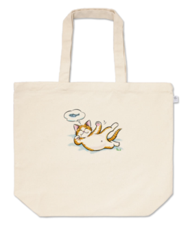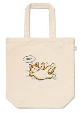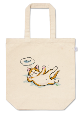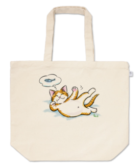 トートバッグ - M - プリント面積中お腹を出して寝ている猫のトートバッグです。 魚の夢を見ています。 この商品はpixivFACTORYで作られた商品です。サンプル画像は完成イメージのため、実物と異なる場合があります。