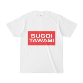 Tシャツ - XL - 白SUGOI TAWASIのTシャツです。SUGOIです。 !!!注意!!! 表面(胸面)に印刷がございます。 裏面(背面)は無地ですのでご注意ください。 この商品はpixivFACTORYで作られた商品です。サンプル画像は完成イメージのため、実物と異なる場合があります。